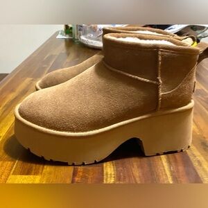 Authentic UGG Chestnut Platform Ankle women's winter boots genuine suede / wool.