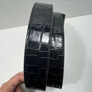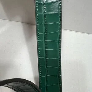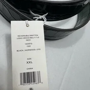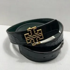 Tory Burch 1.5” Britten Reversible Logo Croc Belt In Black/Green Size: XXL