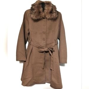 Stay warm and stylish with this elegant brown taupe coat featuring a luxurious faux fur collar.