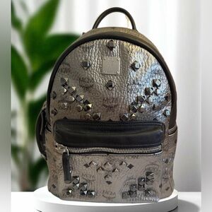 MCM Studded Leather Backpack - Silver /Gunmetal