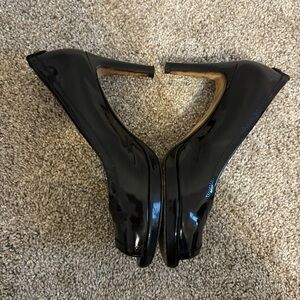 Stuart Weitzman Peep Toe Black Patent Leather Pump Heels Size 7 3” Heel