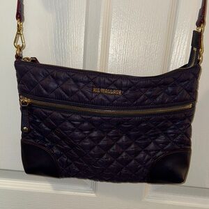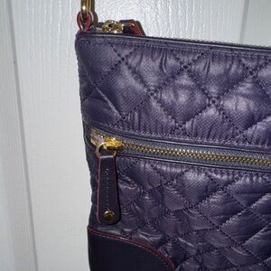 MZ Wallace Dark Purple Plum Quilted Crossbody Bag Gold Hardware