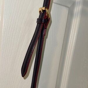 Sorry photos are dark. It’s beautiful light purse in a nice rich purple color. Excellent condition Shows no signs of wear but someone sharpied out the name on the inside.