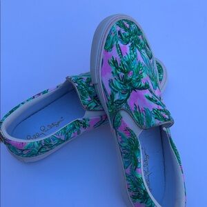 Lilly Pulitzer Palm Print Slip-On Sneakers - Pink and Green