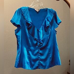 ZOA New York Blue Flutter Sleeve Ruffled Silk Blouse Size L