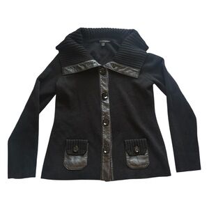 Classiques Entier Merino Wool Leather Trim Knit Cardigan Black Women’s Small
