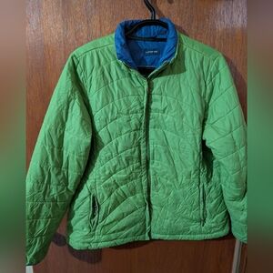 Stay warm and stylish with the Lands' End green quilted jacket. Perfect for chilly days, this jacket combines comfort and fashion effortlessly.