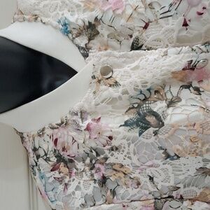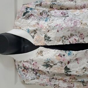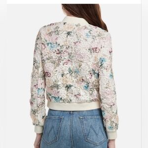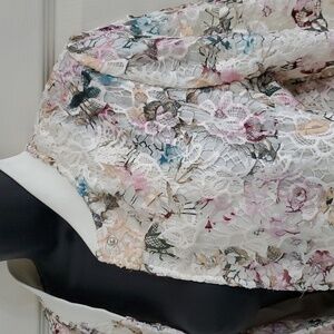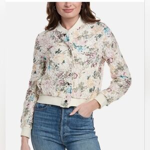 Beautiful NANETTE LEPORE cream ivory multi Floral crochet Lace Bomber Jacket size medium