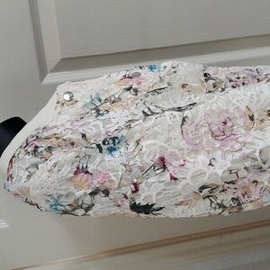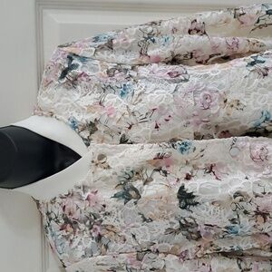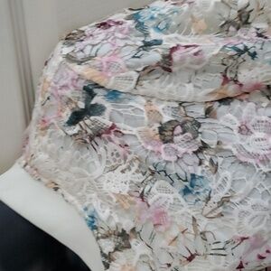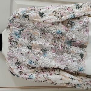 NANETTE NANETTE LEPORE ivory multi Floral crochet Lace Bomber Jacket size Medium