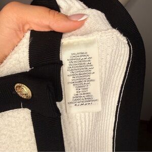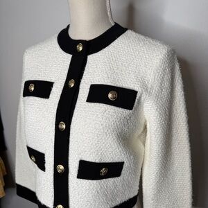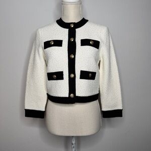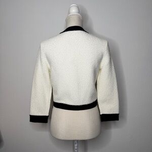 Alice + Olivia Claira Knit Cardigan Jacket Gold Buttons White Black NWT Size S