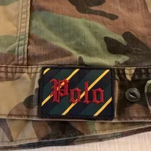 Ralph Lauren jacket in classic camo. Features button accents and rugged design.
