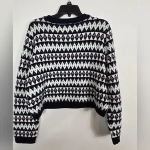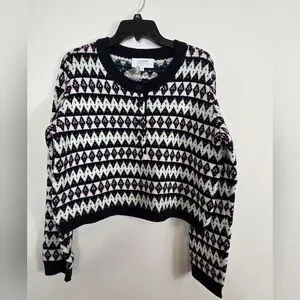 La Ligne Fair Isle Merino Wol Navy Blue Henley Crewneck Pullover Sweater M