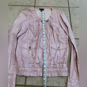 Casual Bandolera Pink Metallic Linen Zip Jacket - Size 10/12