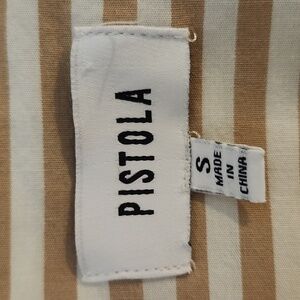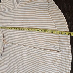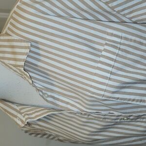It is in very good condition. Classic, business casual lagenlook striped cotton spandex button up shirt pistola