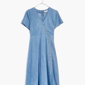 Madewell Denim Wrap Midi Dress Blue Chambray Button Front Size 4