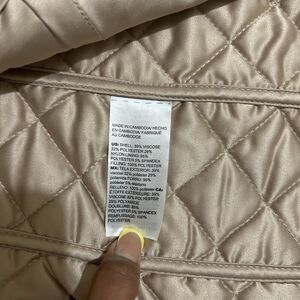This Chico's women's jacket is a stylish addition to any wardrobe. The metallic python print is eye-catching and the quilted accents add texture to the piece. The jacket has a short length and long sleeves, making it suitable for both casual and formal occasions. The open front closure and pockets make it practical and functional for everyday wear.
