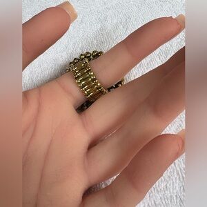 It has a comfortable elasticized band on the back, making it a one-size-fits-most piece. This bold and vibrant ring is perfect for adding a pop of color to any outfit, whether you're dressing up for a night out or looking to elevate your everyday style.