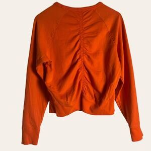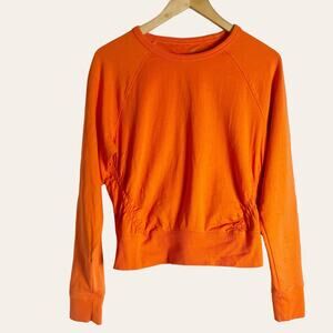 Athleta Sundown Puckered Orange Long Sleeve Pullover Sweatshirt Size Small