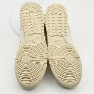 Nike Dunk Low casual sneakers in a versatile cream white colorway. These low-top athletic shoes feature a combination of smooth leather and textured suede overlays for a stylish look. The classic Nike Swoosh is prominently displayed on the side panels, and Nike branding appears on the heel tabs and tongue. The perforated toe box enhances breathability, and the durable rubber outsole provides reliable traction. The insoles feature a subtle floral-like graphic.