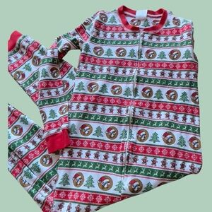 Waffle knit material with gingerbread, tree, reindeer, snowflake, and iconic Buc-ees beaver wearing a Santa hat