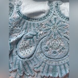 This elegant blue maxi skirt features intricate embroidery detail, perfect for a summer barbecue, a stroll around the city or on the beach. Its soft fabric and stylish design make it a must-have in your wardrobe.