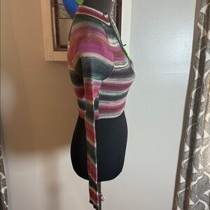 Urban Outfitters striped rib knit half zip mock neck crop top SZ M