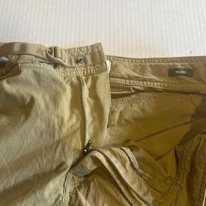 Great condition super lightweight pants w tiny little hole by pocket and 2 stains by bottom leg as shown. These tan cargo pants offer a relaxed fit and cropped length, making them ideal for casual outings or outdoor activities. Crafted from lightweight fabric, they provide comfort and ease of movement throughout the day. 36x30