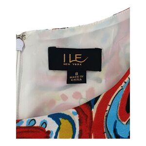 ILE New York Dress Size 8 Red Pink Blue Graphic Cap Sleeve Stretch