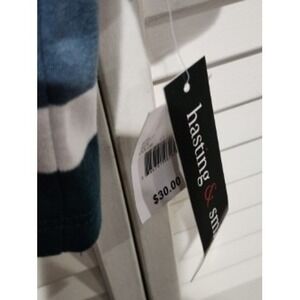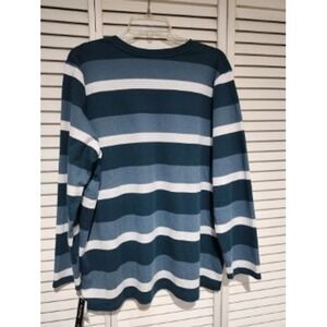 Hasting & Smith long sleeve V-neck shirt in size 3X featuring a classic horizontal stripe pattern in shades of teal, blue, and white. This comfortable top is ideal for everyday wear.