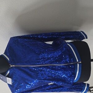 Elevate your style with this dazzling blue sequin long-sleeved jacket. Perfect for making a statement at any event.