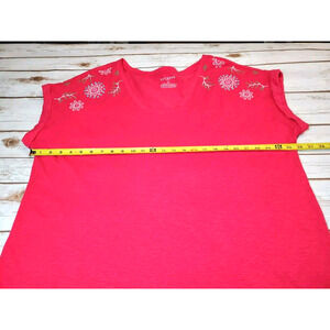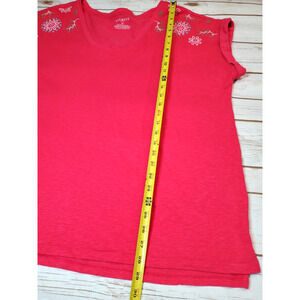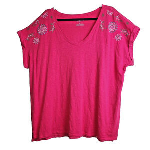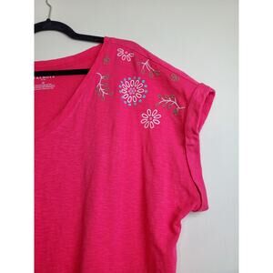 Talbots 2X Womens Plus Size T-shirt Top EMBROIDERED Pink Short Sleeve Cotton
