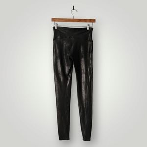 Spanx Legging Womens M Black Faux Leather High-Waisted Compression Waistband