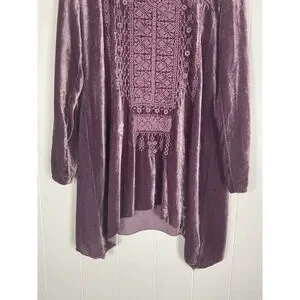 Stunning JOHNNY WAS purple embroidered Velvet Tunic Top 1X
