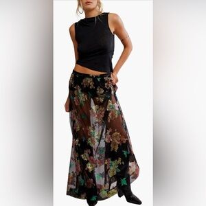 The label's signature bohemian-inspired, free-spirited aesthetic playfully flows throughout this sheer mesh maxi skirt cut in a flowy silhouette scattered with sequined butterflies and flowers.