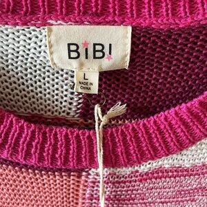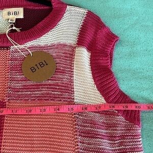 BIBI Women’s Pink And White Sleeveless Sweater Size Large NWT
