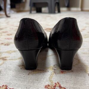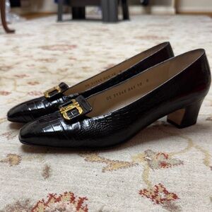 Navarra style 4 cm heel in nero black calf leather in crocodile pattern from Salvatore Ferragamo. Good used condition. Comes with box.
