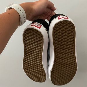 Classic Vans sneakers. Black canvas upper. White stitching and sole. Lace-up design. Sneakers are in great condition. Please view photos for quality and condition.