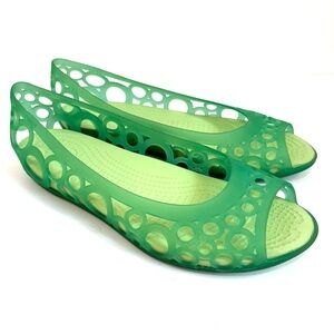 Crocs Green Green Perforated Peep Toe J1 Slip On Retro Comfort Flats