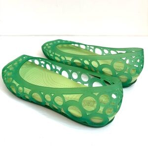 Crocs Green Green Perforated Peep Toe J1 Slip On Retro Comfort Flats size 9