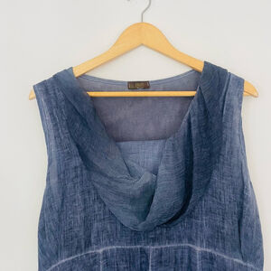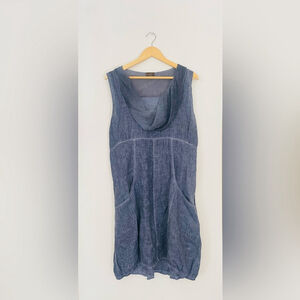amanti Linen Dress blue Lagenlook Artsy Minimal Cowl Pockets Italy