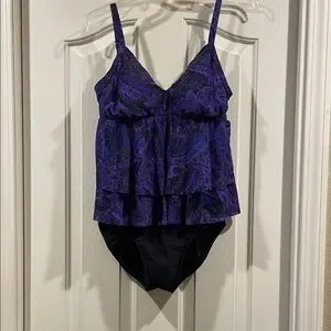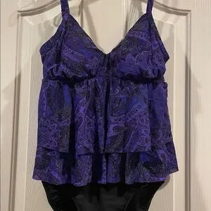 Miraclesuit Purple and Black Paisley Swimsuit excellent condition
