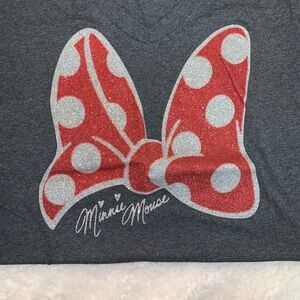 💫Authentic Disney Ladies Minnie Mouse V Neck T-Shirt💫Glitter Detail on Bow snd Lettering💫Size Medium