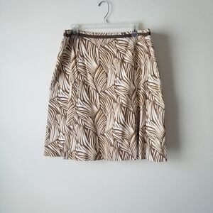 Talbots Y2K Tropical Print Midi Skirt Tan/Cream Neutral Size 18