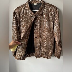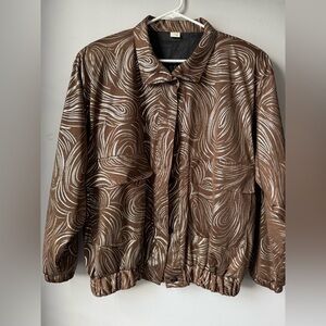 VTG Bomber Jacket Zip Up Brown Silver Swirl Pattern Hippie Boho Jacket Size M OS