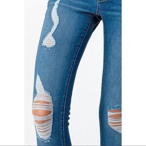 Featuring Full Length, Skinny Fit, Belt Loops, Button & Zipper Closure, Stretched, Dark Medium Denim Blue and casual style
