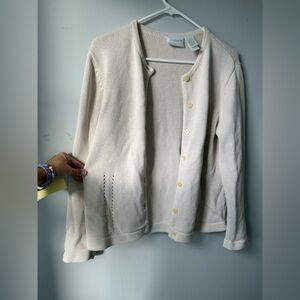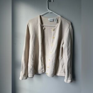VTG Liz Claiborne Sweater Button Down Cardigan Cream Beige Knit Size S M
