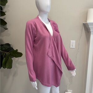 Mercer Street Studio Chiffon Rosette Waterfall Cardigan Sweater Size M Rose Pink