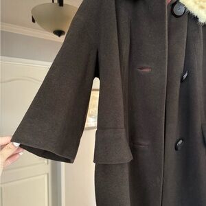 Vintage Brown Wool Coat with Fur Collar