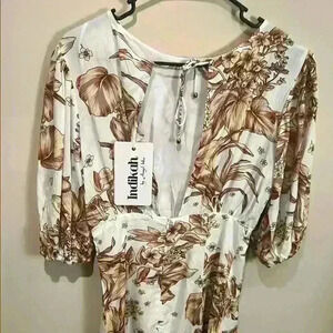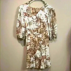 NWT Indikah sz S Brown and White Bishop Sleeve Midi Sundress