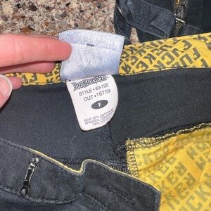 Edgy black pants with striking yellow graphic details. Bold and unique style.